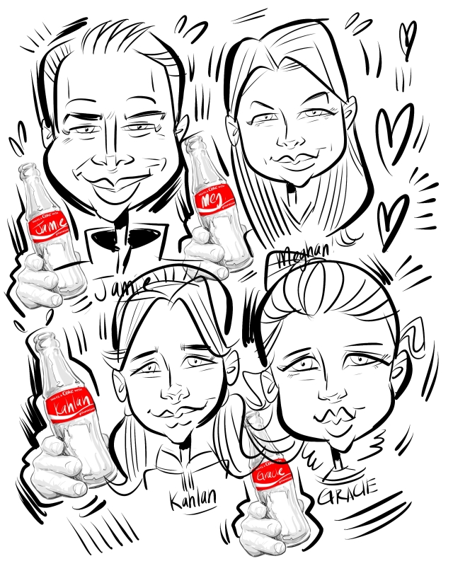Jason is a multi talented caricature artist and graduate of the Sheridan College Illustration program. He has been drawing caricatures professionally since 2000's. Jason specializes in caricatures and illustrations for print and web. Along with being great at producing art, Jason has been busy producing his beautiful family of 4 children, 2 cats, an Italian Greyhound with wife Heidi. Jason lives in Peterborough Ontario and is available to draw caricatures throughout Toronto and GTA.