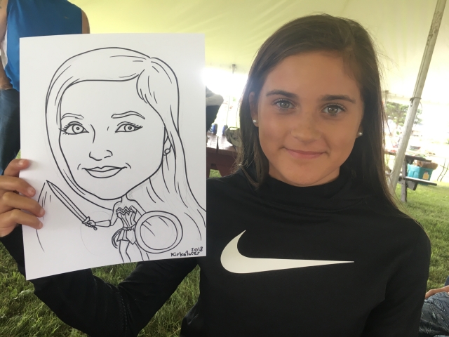 "I have a whole wall of Kirkatures from visiting Adam every year at the Fringe. Love this guy's art!" Client