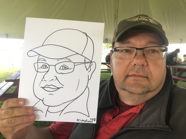 "I have a whole wall of Kirkatures from visiting Adam every year at the Fringe. Love this guy's art!" Client