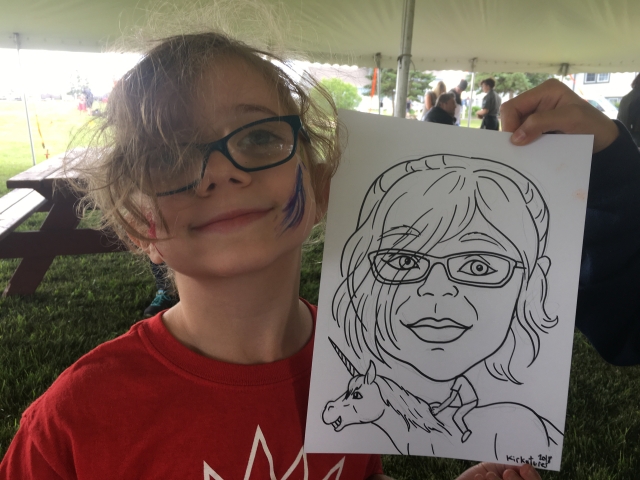 "I have a whole wall of Kirkatures from visiting Adam every year at the Fringe. Love this guy's art!" Client