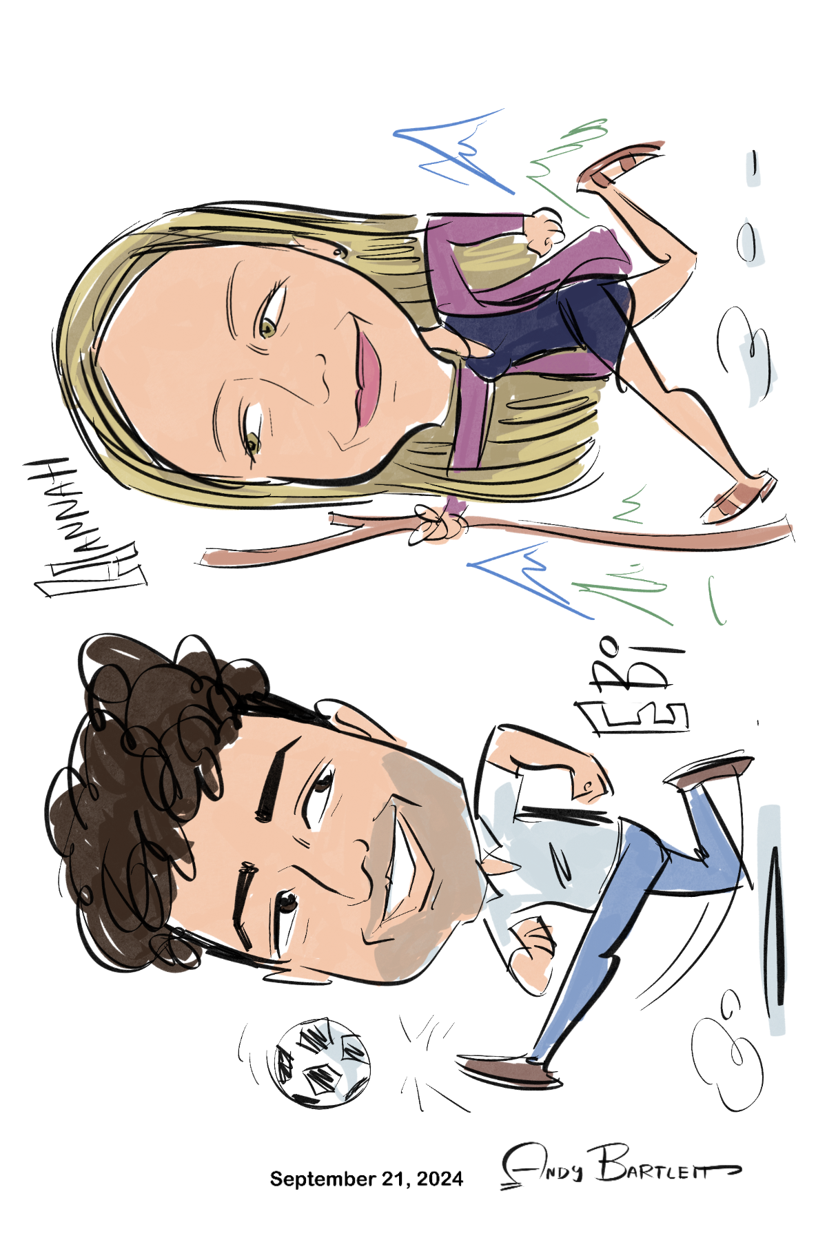 Digital caricature artists are great for trade show, conventions & corporate events and product promotions. We also draw live digital caricatures at weddings, birthday parties, reunions and many more kinds of personal or corporate gatherings. Everyone in all age groups enjoy digital caricatures. We draw them on the sport and send them to the guests electronically. We can also print the digital caricatures on the spot and give them to the clients in plastic sleeves. These make great avatars and social media posts.