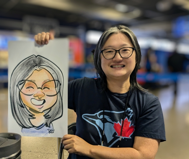 Dani is an animation graduate from Seneca College Her drawing style makes it look like you've just stepped out of a cartoon. She has been doing her line art and caricature work since 2008. She brings the joy of caricatures along with her vibrant smile and energy. She has worked for big name clients such as HBO, Xerox, Mars and more.