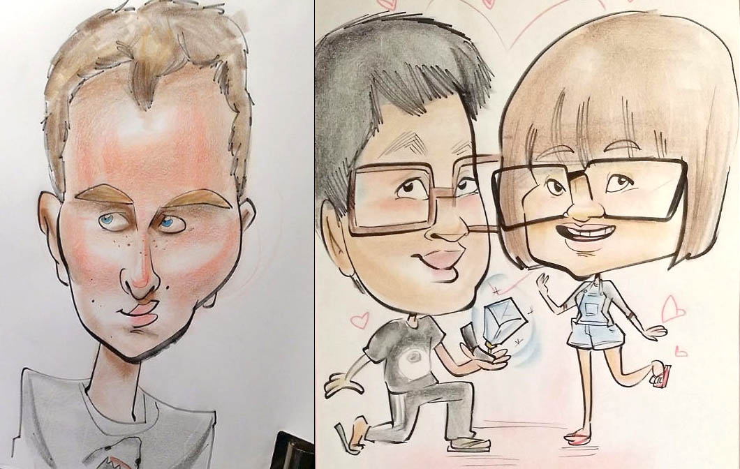 Caricatures are great to be used as gifts, avatars, mascots, or as logos for a businesses or as imagery for websites and apps. They make great corporate gifts or employee awards that impresses them in a personal way. Caricatures are attention grabbers and a unique and memorable style of gift-giving.