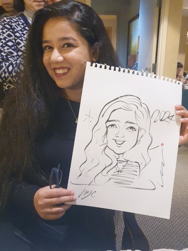 With a decade of experience as a live caricature artist, Hayden has become a familiar face at events and gatherings across Toronto. Armed with her trusty pens and a keen eye for detail, she delights in capturing the essence of individuals in his whimsical caricatures, often completing colour caricatures s in just 5 to 10 minutes, or quick black and white sketches in a mere 1 to 3 minutes.