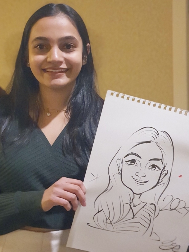 With a decade of experience as a live caricature artist, Hayden has become a familiar face at events and gatherings across Toronto. Armed with her trusty pens and a keen eye for detail, she delights in capturing the essence of individuals in his whimsical caricatures, often completing colour caricatures s in just 5 to 10 minutes, or quick black and white sketches in a mere 1 to 3 minutes.