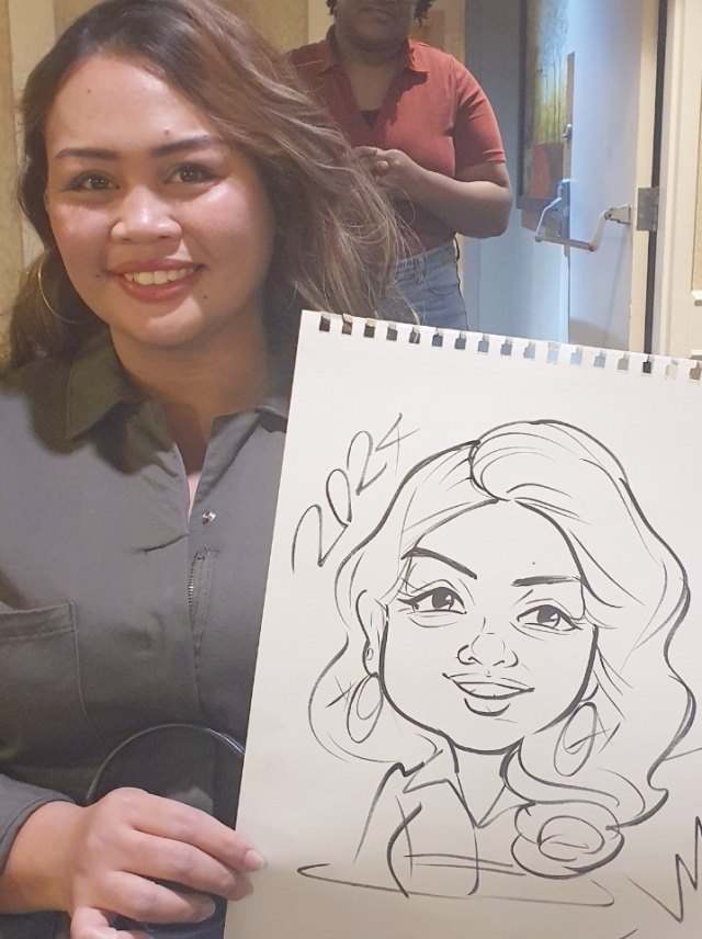 With a decade of experience as a live caricature artist, Hayden has become a familiar face at events and gatherings across Toronto. Armed with her trusty pens and a keen eye for detail, she delights in capturing the essence of individuals in his whimsical caricatures, often completing colour caricatures s in just 5 to 10 minutes, or quick black and white sketches in a mere 1 to 3 minutes.