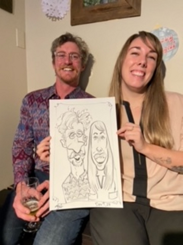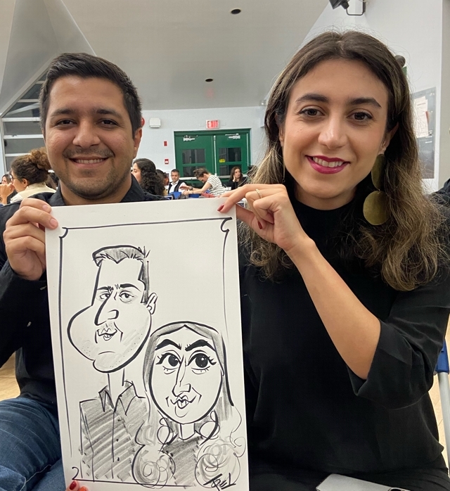 ● For Traditional Caricatures: I started with the traditional process of drawing, and continue using it. I have lights to illuminate my subjects and my art, an easel, a chair for myself, my pens, pencils, high quality 11x14 paper, and cardboard backings with cellophane bags to preserve the drawing so it doesn't damage.