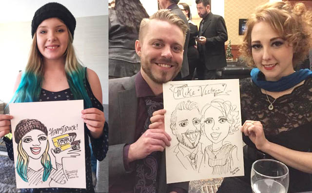 Rozzie's love for people and drawing has come full circle, her childhood dreams are coming true with the opportunity to draw caricatures and create illustrations. She is a born and raised Calgarian, serving Calgary, Edmonton, Medicine Hat and surrounding areas of Alberta. Her formal education includes becoming an Alberta College of Art and Design Graduate of the Visual Communications program. Her creative passions carry her in all areas of life, including drawing caricatures, developing and designing commercial arts for businesses, retail environments, chalkboards, murals, signage, sidewalk art and more.