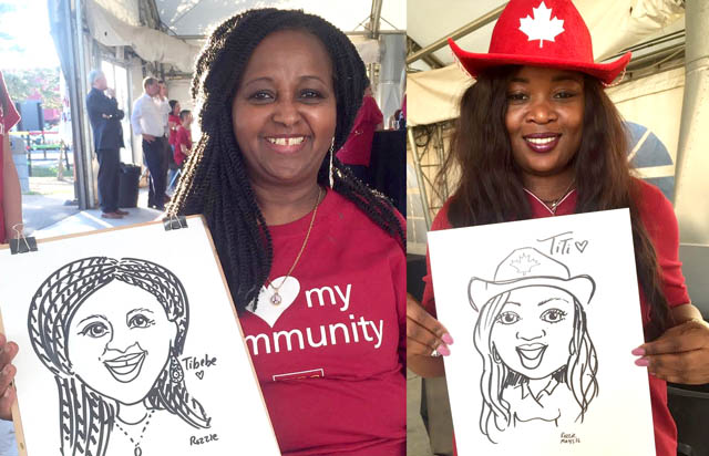 Rozzie's love for people and drawing has come full circle, her childhood dreams are coming true with the opportunity to draw caricatures and create illustrations. She is a born and raised Calgarian, serving Calgary, Edmonton, Medicine Hat and surrounding areas of Alberta. Her formal education includes becoming an Alberta College of Art and Design Graduate of the Visual Communications program. Her creative passions carry her in all areas of life, including drawing caricatures, developing and designing commercial arts for businesses, retail environments, chalkboards, murals, signage, sidewalk art and more.
